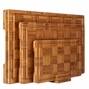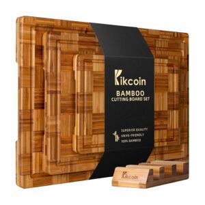 Kikcoin Extra Large Bamboo Cutting Board, (Set of 3) Wood Chopping Board for Kitchen with Juice Groove