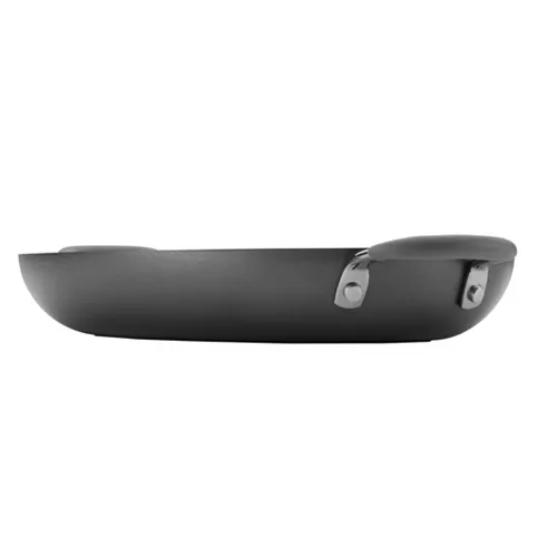Circulon Elementum Hard-Anodized Nonstick 15″ Oval Grill Pan is constructed from super-tough, hard-anodized aluminum for even-heating with maximum durability. Premium-quality nonstick interior in elegant oyster gray color, provides effortless cleanup.