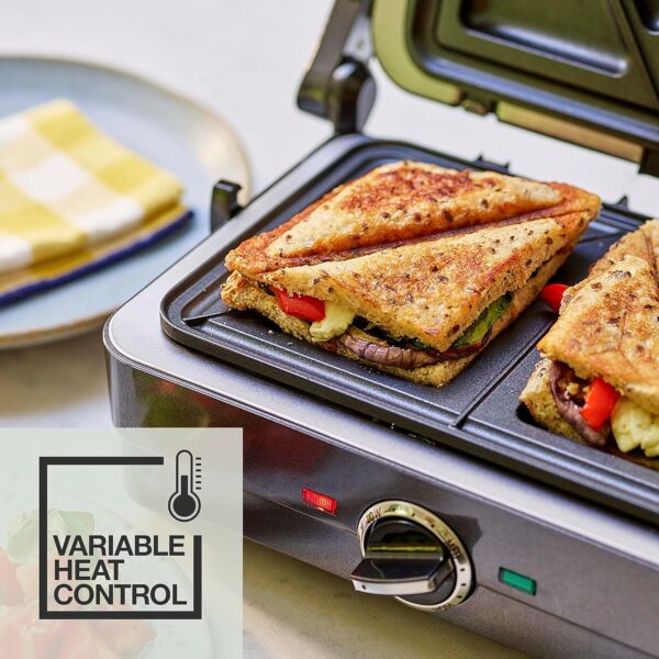 – Deep filled delights: Whip up indulgent fully loaded sandwiches, fluffy omelettes, and sweet treats with the deep fill sandwich plates, ensuring all the flavour is locked inside, with a crispy outside