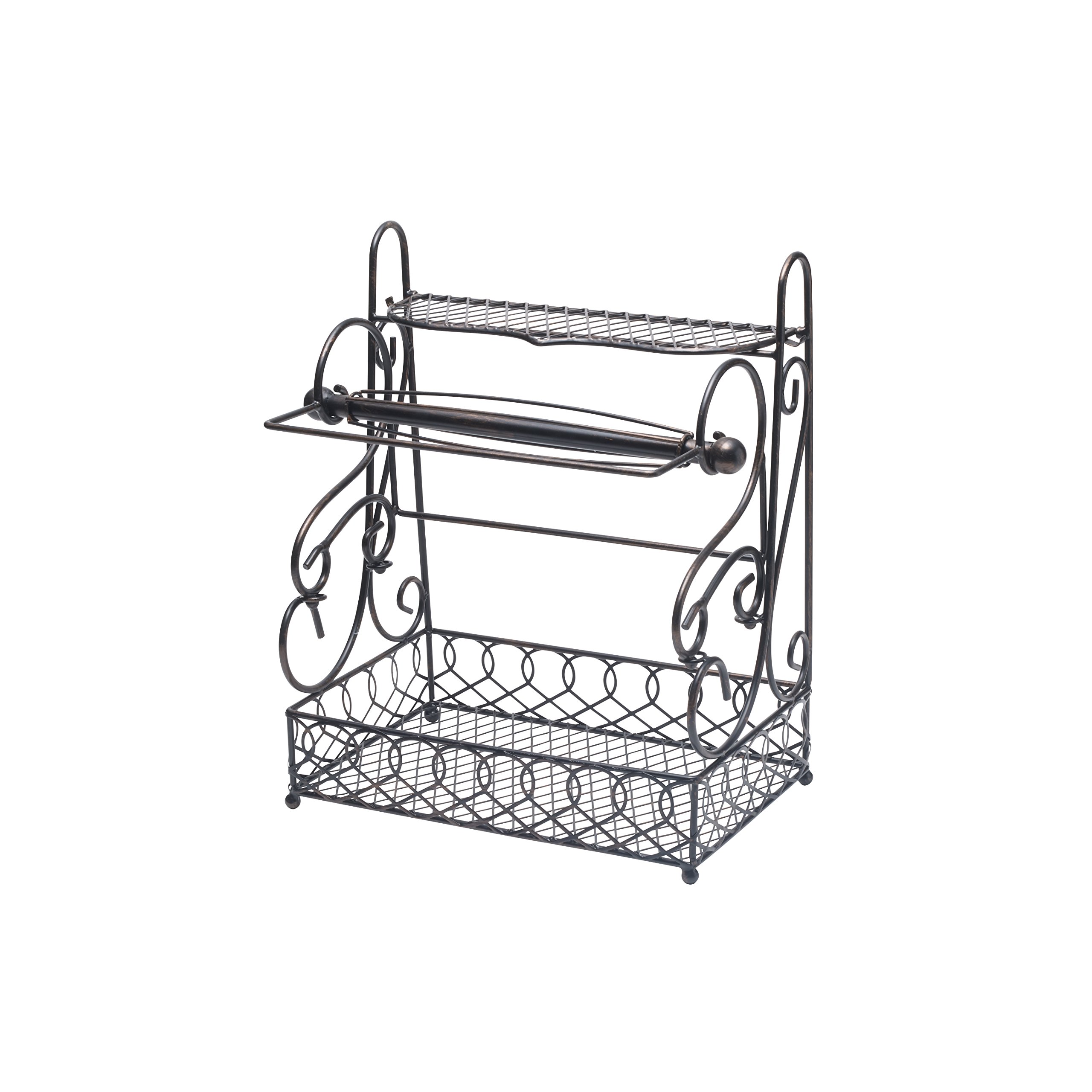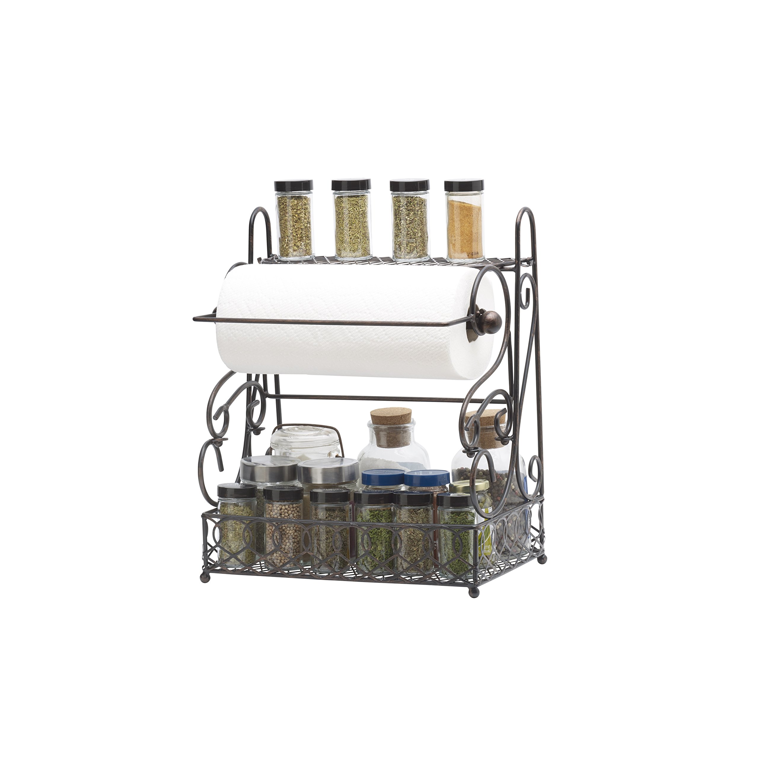 Gourmet Basics Paper Towel Holder with Spice Rack Storage Basket, Antique Black