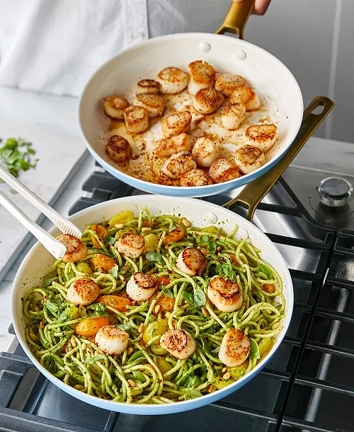 World-class tech meets minimalist style in GreenPan Reserve. This set is more than good looks – the duo forged hard anodized aluminum construction makes it extra tough and scratch-resistant while also promoting even heat distribution. Each piece features our Thermolon Minerals Pro healthy ceramic nonstick coating, featuring layers of certified diamonds to make it ultra-durable and heat responsive all without PFAS (Per- and Polyfluoroalkyl Substances), PFOA (Perfluorooctanoic Acid), lead, and cadmium. The meal possibilities are endless – flavorful frittatas, tender stews, and perfectly seared seafood are just the start.