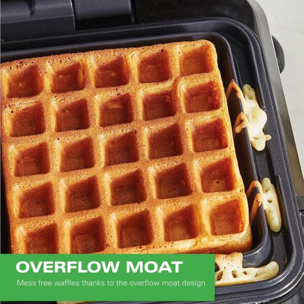 – OVERFLOW PROTECTION: Don’t worry about spills! The Pro Smart Waffle Maker has an overflow channel will catch surplus batter – for mess free waffles!