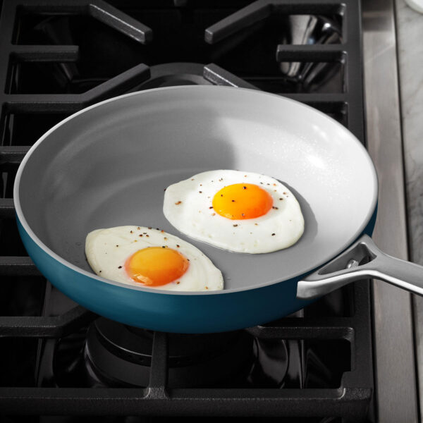 The nonstick interiors of this cookware require less oil or butter while you’re cooking for healthier meals that don’t stick to the pans. The heavy-gauge aluminum construction delivers even heat distribution and long-lasting durability for years of cooking.