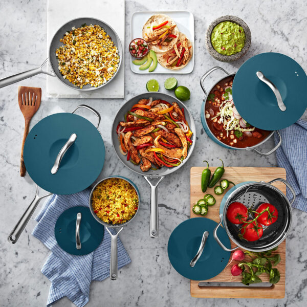 Member’s Mark 11-Piece Modern Ceramic Cookware Set, Peacock