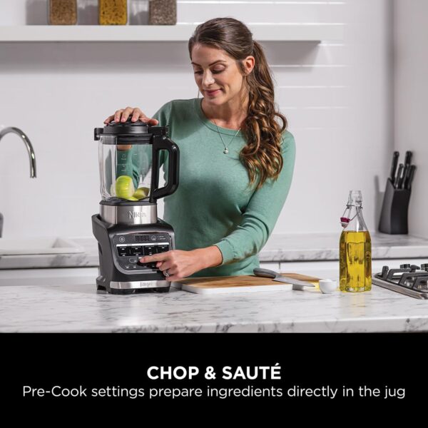 – CHOP, SAUTÉ, BLEND & COOK: Blend hot and cold creations. The built-in heating element quickly cooks ingredients directly in the jug, while blending to your desired texture.