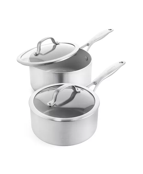 Venice Pro Tri-Ply Stainless Steel Healthy Ceramic Nonstick 2-Quart, 3-Quart Saucepan Pot Set with Lids