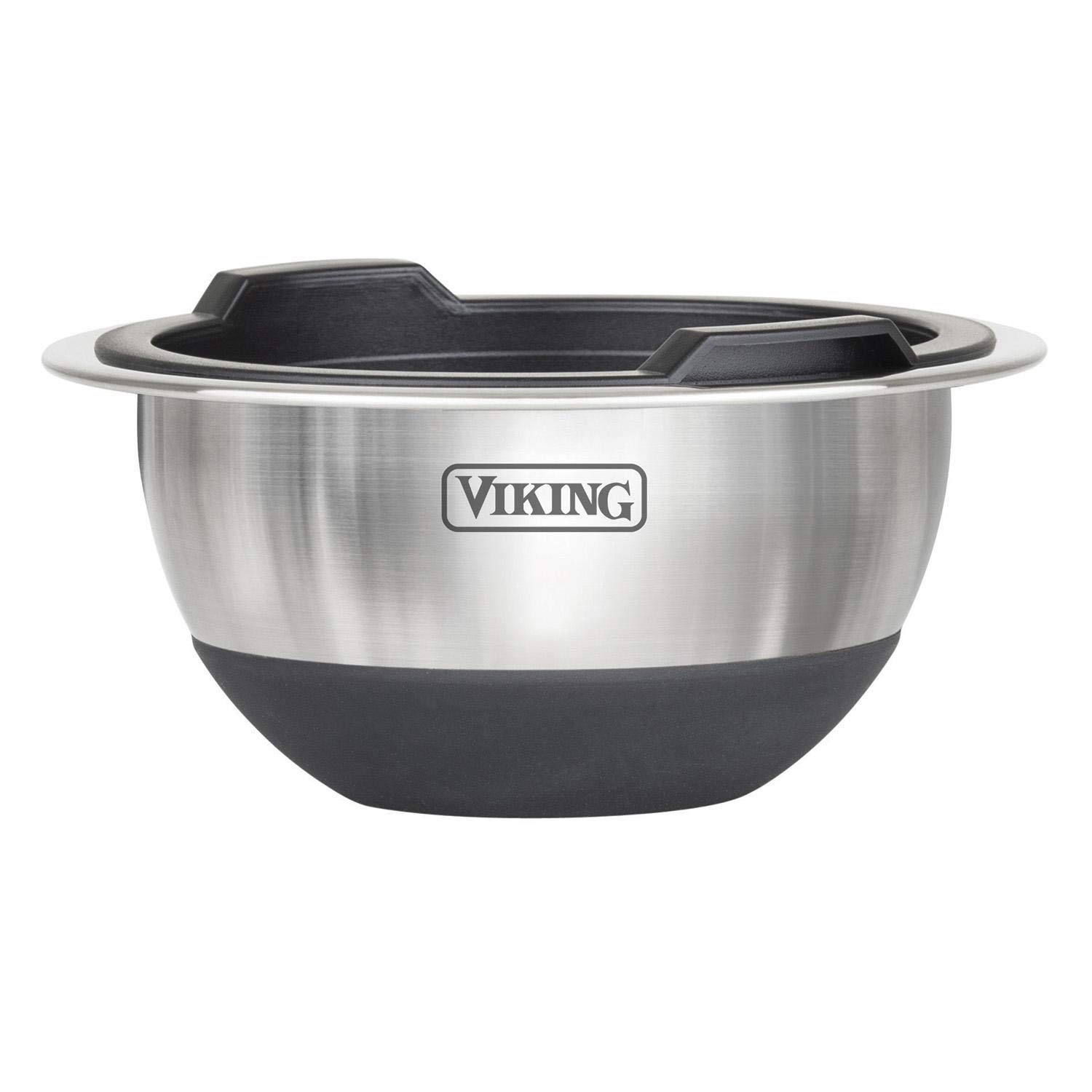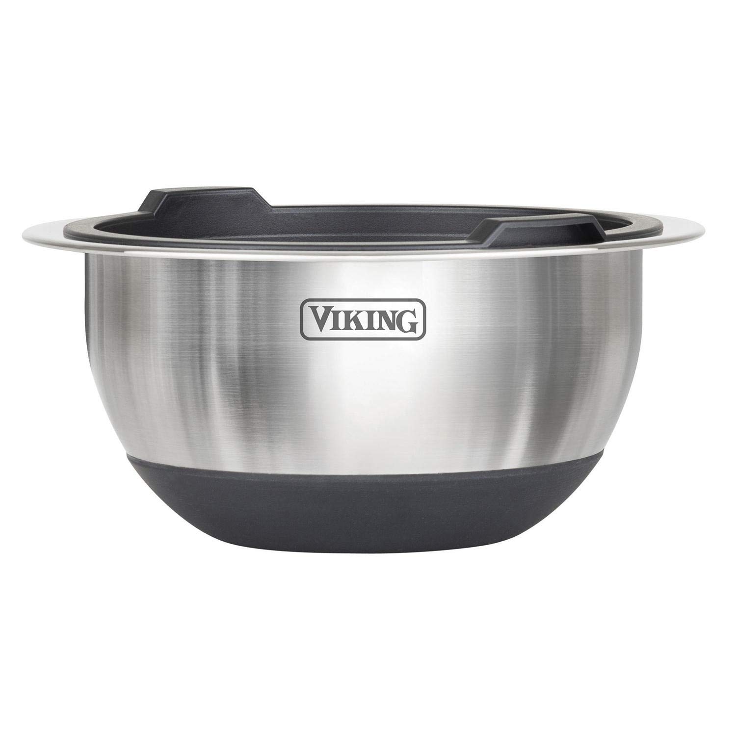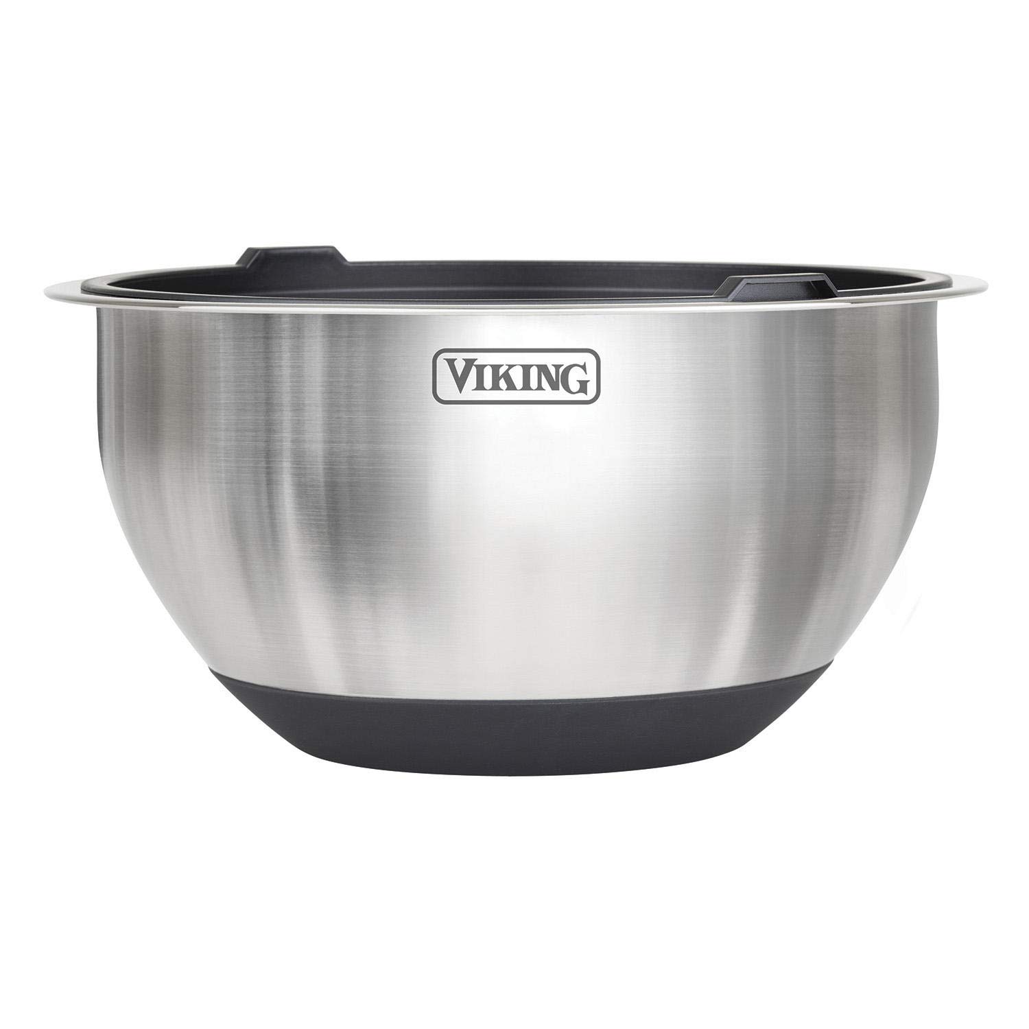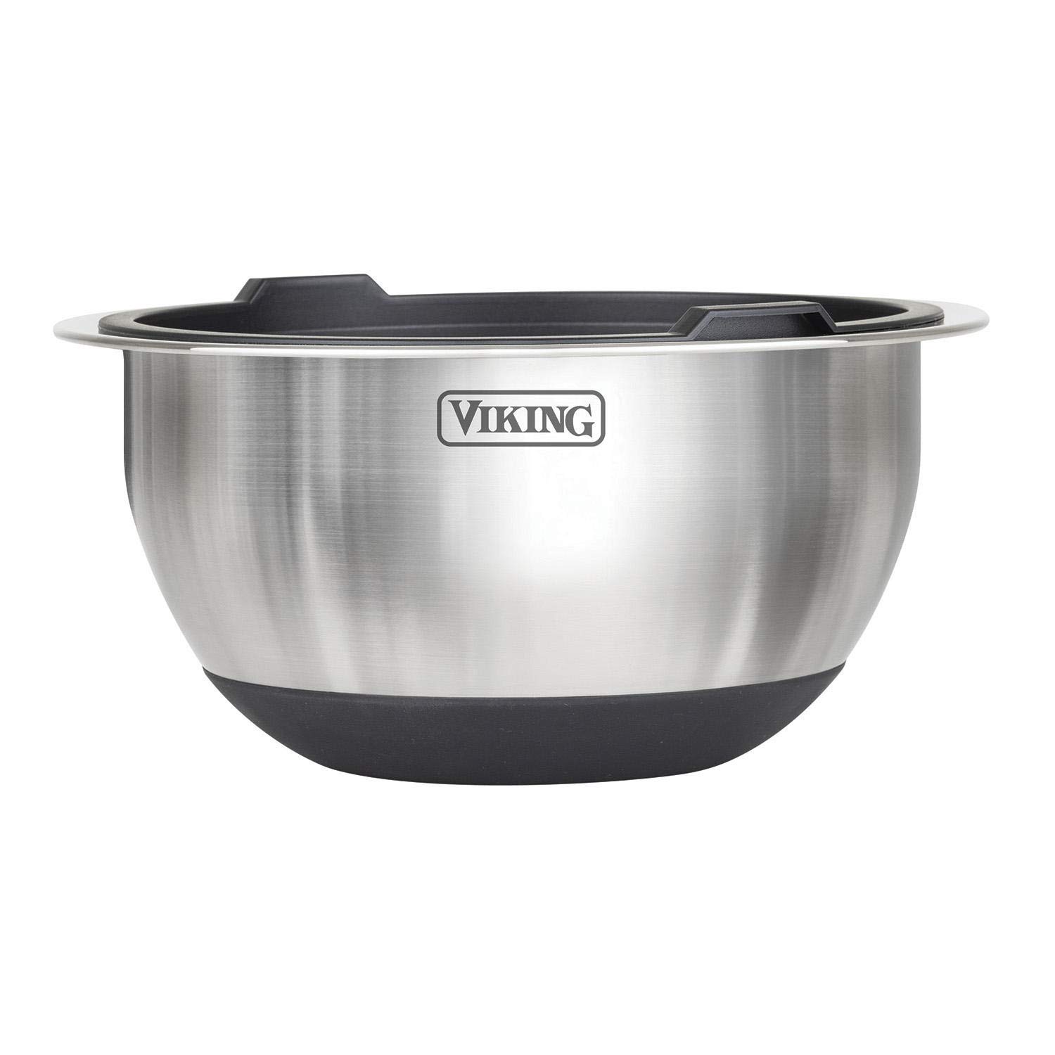 Your mise-en-place food preparation just got easier with this professional 10-piece Stainless Steel Bowl Set with Silicone Base and Lid from Viking. Made from durable, stainless steel, these bowls are perfect for prep, mixing, serving and everything in between! Inside the bowls you’ll find convenient measurement markings for quick and easy measurements. The extended edge at the top of the bowl makes for an easier grip during mixing, and the silicone base not only provides added stability during tasks but also helps eliminate slipping during use and prevents scratching of your countertop. Each bowl comes with an airtight silicone lid, enabling you to prep ingredients in advance and keep sealed so they are fresh and ready to use when you need them. The Viking 10-piece Stainless Steel Bowl Set can be nested for compact and easy storage when not in use. The bowls are refrigerator and freezer safe for short-term food storage as well. The Bowls are dishwasher safe, Lids are handwash only.