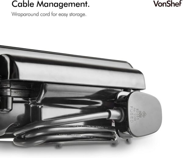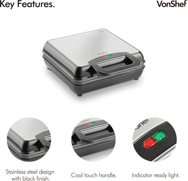 Cook up deliciously crisp yet fluffy waffles with the easy to use VonShef Quad Belgian Waffle Maker. Whether it’s sweet or savoury, with 1100W of cooking power, you can whip up a batch of authentic Belgian waffles in minutes.